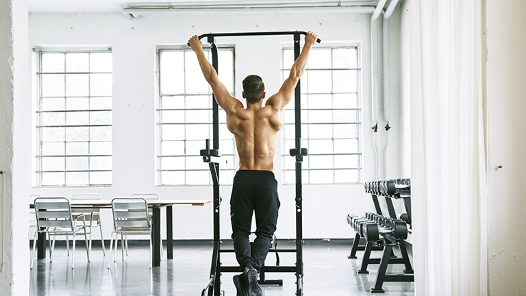 A pull-up bars are easy-to-use, affordable and practical. As well as the classic pull-up with the wide overhand grip, you can also do chin-ups with the narrow underhand grip. Watch that upper-body widen.